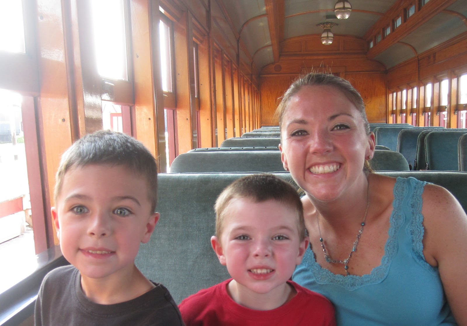 But then, Joshua shouted "LOOK! It's SANTA!" At first, I wasn't sure if this was just an older gentleman with bad taste in clothes, so I gave Joshua the look to be a little more quiet. BUT, it really was Santa! He came over with his sack and posed for a picture with the kids and gave them each a candy cane. Then he told the kids to come back and see him at the Railroad in November or December. I was surprised he would be there - after all, this wasn't Christmas in July! This was the last day of August!